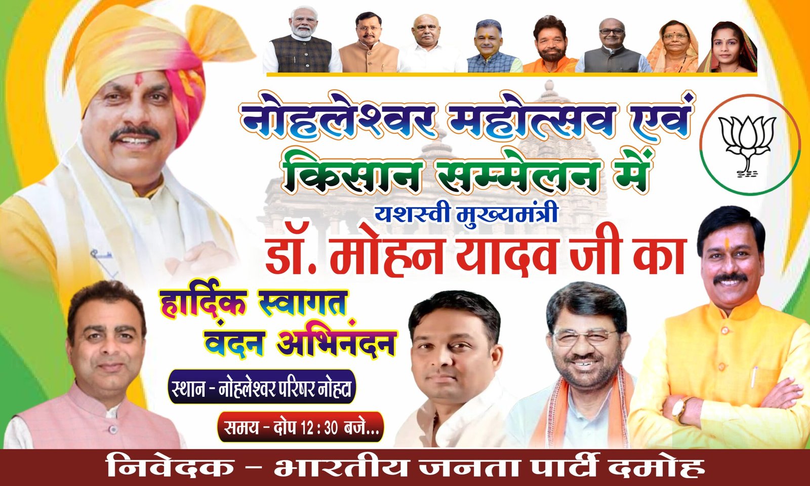 नोहलेश्वर महोत्सव में शामिल हुए मुख्यमंत्री डॉ. मोहन यादव, किसान सम्मेलन को किया संबोधित नोहटा नगर परिषद बनेगा, 600 करोड़...