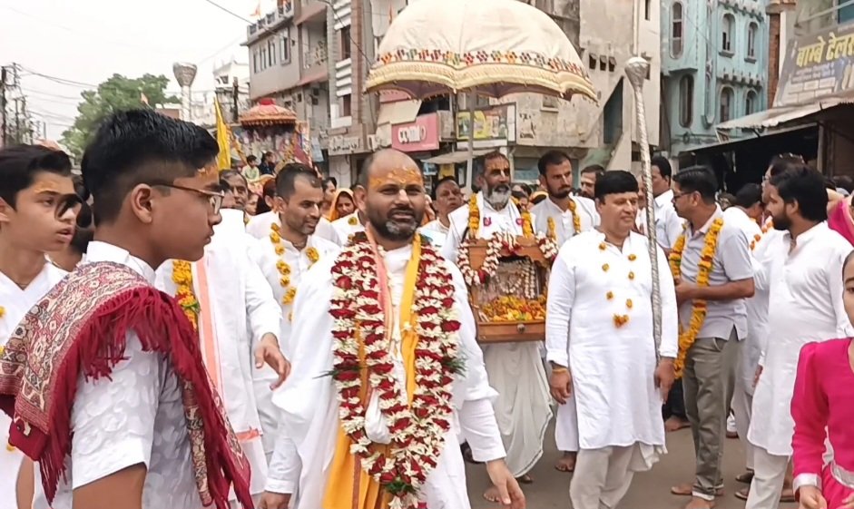 श्री गौर राधा रमण जू के वर्षगाँठ महोत्सव पर शहर के प्रमुख चौराहों से भव्य शोभा यात्रा निकाली गई जिसका लोगों ने जगह-जगह स्वागत कर धर्म लाभ उठाया।