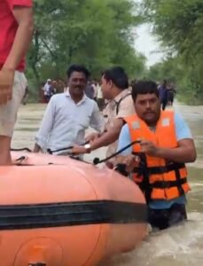 सुरक्षित बाहर निकाला गया। तेज बहाव होने एवं शेष ग्रामीणों के सुरक्षित होने के कारण रात में रेस्क्यू रोक दिया गया एवं टीम को घटनास्थल पर ही रात्रि रोका गया। पुनः सुबह रेस्क्यू टीम ग्राम पहुंची लेकिन जलभराव कम होने एवं ग्रामीणों के सुरक्षित होने के कारण प्रशासन से चर्चा कर रेस्क्यू समाप्त किया गया।चौकी मुराछ थाना गैसाबाद में जलभराव की सूचना पर रात्रि दो बजे टीम को रवाना किया गया। फिलहाल रेस्क्यू जारी है।