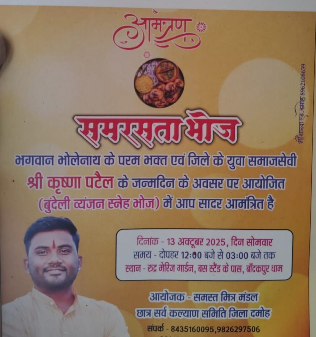 संस्कृति विभाग के नाम पर मनाया गया जन्मदिन, जनसंपर्क विभाग बना प्रचारक** 1 min read 2 months ago 😊 कृपया इस न्यूज को शेयर करें😊 तनुज पाराशर तनुज पाराशर See author's posts Whatsapp बटन दबा कर इस न्यूज को शेयर जरूर करें Advertising Space Responsive WordPress Image Carousel Plugin स्वतंत्र और सच्ची पत्रकारिता के लिए ज़रूरी है कि वो कॉरपोरेट और राजनैतिक नियंत्रण से मुक्त हो। ऐसा तभी संभव है जब जनता आगे आए और सहयोग करे. Donate Now More Stories 1 min read श्री आनंदकंद दयालु आश्रम सवा लाख मानस पाठ दमोह श्री वेदांताचार्य श्री श्री भगवान की न्यूज़ बनारस से दमोह के लिए! 7 days ago 1 min read पिकअप और बाइक की जोरदार भिड़ंत: हेलमेट पहने होने से बाइक चालक की जान बची, दूसरा युवक गंभीर! 1 week ago 1 min read मुख्यमंत्री तीर्थ दर्शन योजना : वैष्णोदेवी व जगन्नाथपुरी यात्राओं के लिए आवेदन शुरू 1 week ago You may have missed 1 min read श्री आनंदकंद दयालु आश्रम सवा लाख मानस पाठ दमोह श्री वेदांताचार्य श्री श्री भगवान की न्यूज़ बनारस से दमोह के लिए! 7 days ago 1 min read काशी में दमोह का गौरव: महंत श्री भगवान वेदांताचार्य जी का नौ दिवसीय शिवपुराण महायज्ञ प्रारंभ! 1 week ago 1 min read पिकअप और बाइक की जोरदार भिड़ंत: हेलमेट पहने होने से बाइक चालक की जान बची, दूसरा युवक गंभीर! 1 week ago 1 min read मुख्यमंत्री तीर्थ दर्शन योजना : वैष्णोदेवी व जगन्नाथपुरी यात्राओं के लिए आवेदन शुरू 1 week ago