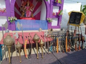 मध्य प्रदेश के दमोह मैं आज विश्व हिंदू परिषद बजरंग दल ने श्री शिव पार्वती मंदिर में हिंदू परंपरा अनुसार शस्त्र पूजन किया!