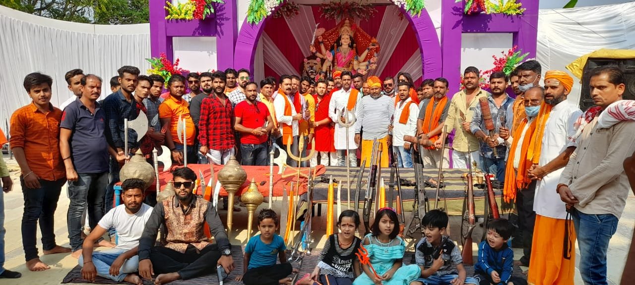 मध्य प्रदेश के दमोह मैं आज विश्व हिंदू परिषद बजरंग दल ने श्री शिव पार्वती मंदिर में हिंदू परंपरा अनुसार शस्त्र पूजन किया!