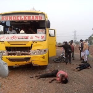मध्य प्रदेश के दमोह जिले के ग्राम नोहटा थाना क्षेत्र के अंतर्गत दमोह से जबलपुर की ओर जा रही बुंदेलखंड मोटर ट्रेवल्स दो बाइक सवार आमने सामने की टक्कर मैं भीड़ गए थे दोनों बाइक सवार बेहोशी की हालत में है जानकारी अनुसार बिजोरा खमरिया एवं कंचन पुरी के बीच में यह घटना घटित हुई है जो सामने से बुंदेलखंड आ रही थी खमरिया की ओर से दमोह की ओर बाइक सवार जा रहे थे स्कोर एंबुलेंस की मदद से जिला अस्पताल ले जाया गया है