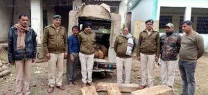 काशीराम रैकवार वनपाल भरत लाल सोनी दैनिक वेतन भोगी महेंद्र तिवारी अनिल ठाकुर वनरक्षक राहुल गुलाटी वनरक्षक रात्रि में मुखबिर की सूचना परिषद अधिकारी को प्राप्त हुई जिसके आधार पर वाहन को घेराबंदी कर टोल टैक्स के पास पड़रिया जामुन गांव के पास से जप्त किया गया ड्राइवर वाहन छोड़कर भाग गया।।