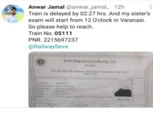 ट्रेन लेट होने से छूट रही थी छात्रा की परीक्षा, ट्वीट मिलते ही रेलवे ने दौड़ाई गाड़ी, समय पर वाराणसी पहुंचाया*
