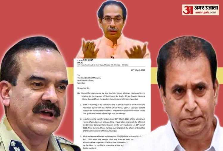 मुंबई पुलिस के पूर्व कमिश्नर परमबीर सिंह ने महाराष्ट्र के गृहमंत्री अनिल देशमुख पर बड़ा आरोप लगाते हुए राज्य के मुख्यमंत्री उद्धव ठाकरे को चिट्ठी लिखी है। इसमें उन्होंने गृह मंत्री अनिल देशमुख पर आरोप लगाया है कि उन्होंने निलंबित पुलिस अधिकारी सचिन वाज़े को हर महीने 100 करोड़ रुपए इकट्ठा कर उन्हें देने के आदेश दिए थे।