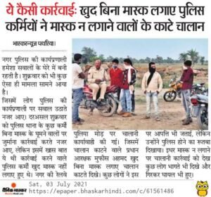 स्थानीय पत्रकार द्वारा प्रकाशित की गई तो प्रधान आरक्षक मुफीस अहमद बोले कि हमसे बुराई लोगे तो हम भी बुराई भंजाएंगे और एस आई आर पी चौधरी बोले जाओ जिस से शिकायत करना है कर दो मैं नहीं लगाता मार्क्स कानून का पालन करने वाले लोग भी जब इस तरह के कृत्य करेंगे तो लोग तो अपने आप को ठगा सा महसूस करेंगे ही कि अगर मैंने मुंह पोछने के लिए मार्क्स निकाला और मेरा चालान हो गया और दिन भर चलानी कार्यवाही करने वाले दरोगा जब मार्क्स नहीं लगा रहे और उन पर कोई कार्यवाही करने वाला नहीं है ऐसा ही कुछ दिन पहले दमोह नगर पालिका में देखने को मिला था जहां पर नगर पालिका के सभी कर्मचारी बगैर मार्क्स के नगर पालिका में अपने कार्यों में लगे हुए थे!