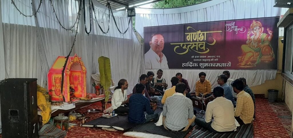 कैबिनेट मंत्री दर्जा प्राप्त राहुल सिंह के कार्यालय में गणेश जी की स्थापना पर क्षेत्रीय लोगों द्वारा उत्साह पूर्वक भजनो की प्रस्तुति दी।।