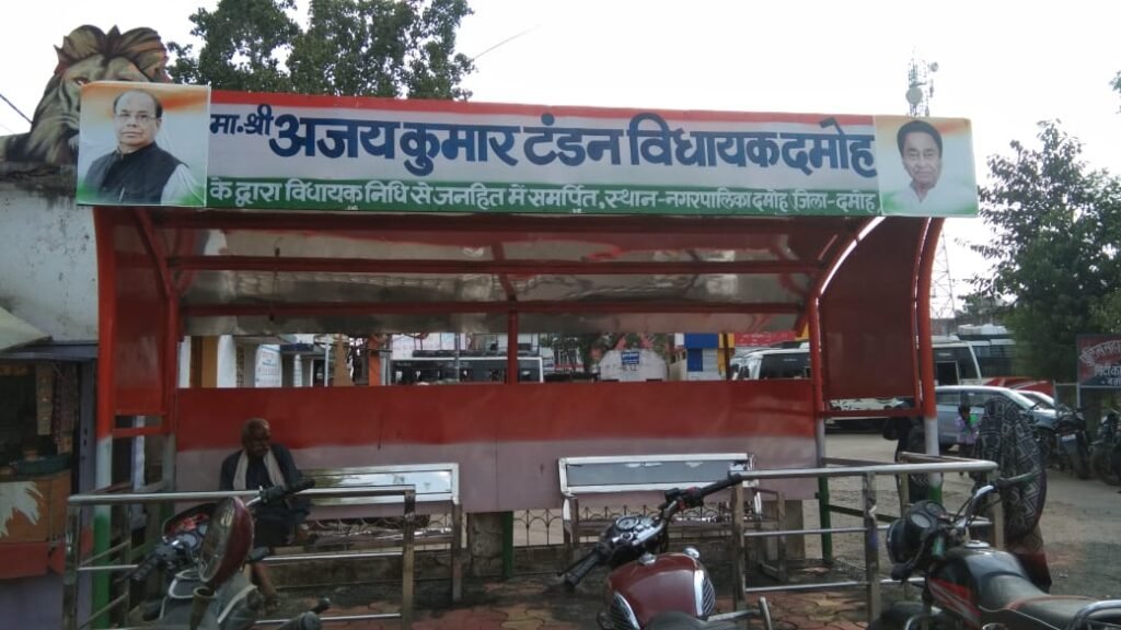कि यात्री प्रतीक्षालय बना हुआ है जो कि अचानक सुबह सुबह जब लोगों ने देखा तो वह भी आश्चर्यचकित रह गए कि कल तो यहां कोई यात्री प्रतीक्षालय नहीं था अचानक से रातों-रात प्रकट हुआ यात्री प्रतीक्षालय जिसमें दमोह विधायक अजय टंडन और मध्य प्रदेश के भूतपूर्व मुख्यमंत्री कमलनाथ जी का छायाचित्र बना हुआ है इससे यह बात तो क्लियर है कि यह यात्री प्रतीक्षालय विधायक निधि से प्रकट हुआ लग रहा है लेकिन सवाल एक और भी है कि जब नगर पालिका को पता है कि दमोह का बस