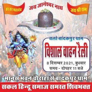 मध्य प्रदेश के दमोह जिले के ग्राम बांदकपुर सिद्ध क्षेत्र के लिए विशाल रैली समस्त हिंदू समाज के युवाओं द्वारा श्री जागेश्वर धाम बांदकपुर में अतिक्रमण के खिलाफ चल रहे अभियान में इस अभियान से जुड़े युवाओं को जूते मारने , मसलने और जान से मारने जैसी शब्दों का उपयोग कर धमकाया गया है , यह प्रत्यक्ष रुप से समस्त शिव भक्तों को एक चुनौती है, जिस चुनौती को स्वीकार करते हुए सकल हिंदू समाज शिव भक्त युवा 8 दिसंबर 2021 को समय 11:00 दमोह मानस भवन चौराहे से विशाल वाहन रैली लेकर इस चुनौती को स्वीकार करते हुए ,विधर्मी यों के समक्ष बांदकपुर में जाएंगे और इस चुनौती का जवाब उन्हीं के स्थान पर दिया जाएगा, अतः समस्त हिंदू युवाओं से विनम्र अनुरोध है कि धर्म कार्य में शामिल होकर विधर्मीयों को उनकी सीमाओं का बोध कराने में अपना योगदान करें।