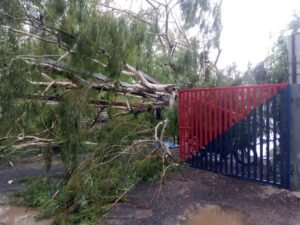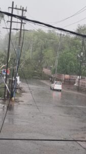 मध्य प्रदेश के दमोह जिले में हुई आंधी तूफान के साथ रिमझिम बारिश से शहर में मचा कोहराम सिटी कोतवाली के सामने पेड़ गिरने से सड़क जाम।