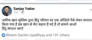 संजय यादव की बहन ने सोशल मीडिया पर कुछ संजय यादव के परिवार पर अभद्र बातों को लेकर सोशल मीडिया पर अपनी बात रखी थी जो कि शहर के सभी पत्रकारों को भेजी थी और जिले में सभी को वायरल की थी उन्होंने बताया था कि संजय यादव जो भाजपा का सदस्य है उसका बहुत ही गंदा व्यवहार है इसको भारतीय जनता पार्टी द्वारा टिकट नहीं दी जानी चाहिए। जब यह ऑडियो वायरल होते हुए आरिफ खान पत्रकार के पास पहुंचा तो उन्होंने उनकी बहन से इस संबंध में बात की और संजय यादव का पक्ष जानना चाहा कि आपकी बहन का एक ऑडियो वायरल हो रहा है इस ऑडियो में आप पर आपत्तिजनक बातें और गंभीर आरोप लगाए गए हैं इस पर आपका क्या कहना है तो उन्होंने पत्रकार को अपनी दुकान पर बुलाया और कहा कि भैया यह घरेलू मामला है इसे ज्यादा तूल न दें पत्रकार को उनकी टोन से लगा कि यह दुकान पर हमें बुलाकर मारने का प्रयास कर सकते हैं यही वजह थी कि पत्रकार इनकी दुकान पर नहीं गया फिर यह उन्हें फोन कर कर बुलाने लगे तो उसे और भी संदेह हुआ कि यह हमें बार-बार फोन क्यों कर रहे हैं। पत्रकार जब संजय यादव की दुकान पर नहीं गया तो संजय यादव द्वारा उस पत्रकार के खिलाफ पुलिस कप्तान दमोह एसपी को एक लिखित शिकायत दी गई जिसमें कहा गया कि पत्रकार हमें नाजायज परेशान कर रहा है और हमारी बहन से पैसे लेकर ऑडियो वायरल कर रहा है। एसपी को शिकायत करने के बाद भी संजय यादव को चाहिए था कि पुलिस को निष्पक्ष कार्यवाही करने देते भारतीय जनता पार्टी में इतने बड़े पद पर होने के बाद भी आपको पुलिस की कार्यप्रणाली पर विश्वास नहीं था यही वजह थी कि संजय यादव अपने साथियों को लेकर आरिफ खान को ढूंढने निकल पड़े अस्पताल पर कुछ पत्रकारों से आरिफ खान का पता पूछते हुए वह जब बैंक चौराहे पर पहुंचे तो आरिफ खान को बहुत गंदी गंदी गालियां दी और मारपीट की जिसका सीसीटीवी फुटेज पुलिस को दे दिया गया है और मारपीट के बाद उसे गाड़ी में बैठा कर थाने ले गए। और आरिफ खान पर भी झूठा मुकदमा कायम कराने के उद्देश्य से उसे थाने ले गए थे और सोशल मीडिया पर संजय यादव द्वारा एक पोस्ट डाली गई जिसमें मुस्लिम पत्रकार का हवाला देते हुए लिखा जागो हिंदू जागो। जबकि यह इनका घरेलू मामला था और इनकी बहन ने ही इनके ऊपर कुछ इल्जाम लगाए थे इस बात को लेकर इन्होंने सोशल मीडिया पर फेसबुक के जरिए पोस्ट डाल कर हिंदू और मुस्लिम समुदाय में झगड़ा कराना चाहा जबकि दमोह पुलिस द्वारा अभी देश में चल रहे नूपुर शर्मा विवाद पर दमोह पुलिस की सूझबूझ से कोई भी ऐसी अप्रिय घटना देखने को नहीं मिली जो कि पूरे देश में देखने को मिली।