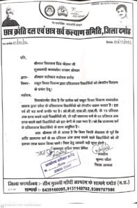 प्रतिभावान छात्रों को दिए जाने वाले लैपटॉप के संबंध में आज छात्र क्रांति दल ने दमोह कलेक्टर को सौंपा ज्ञापन।