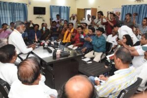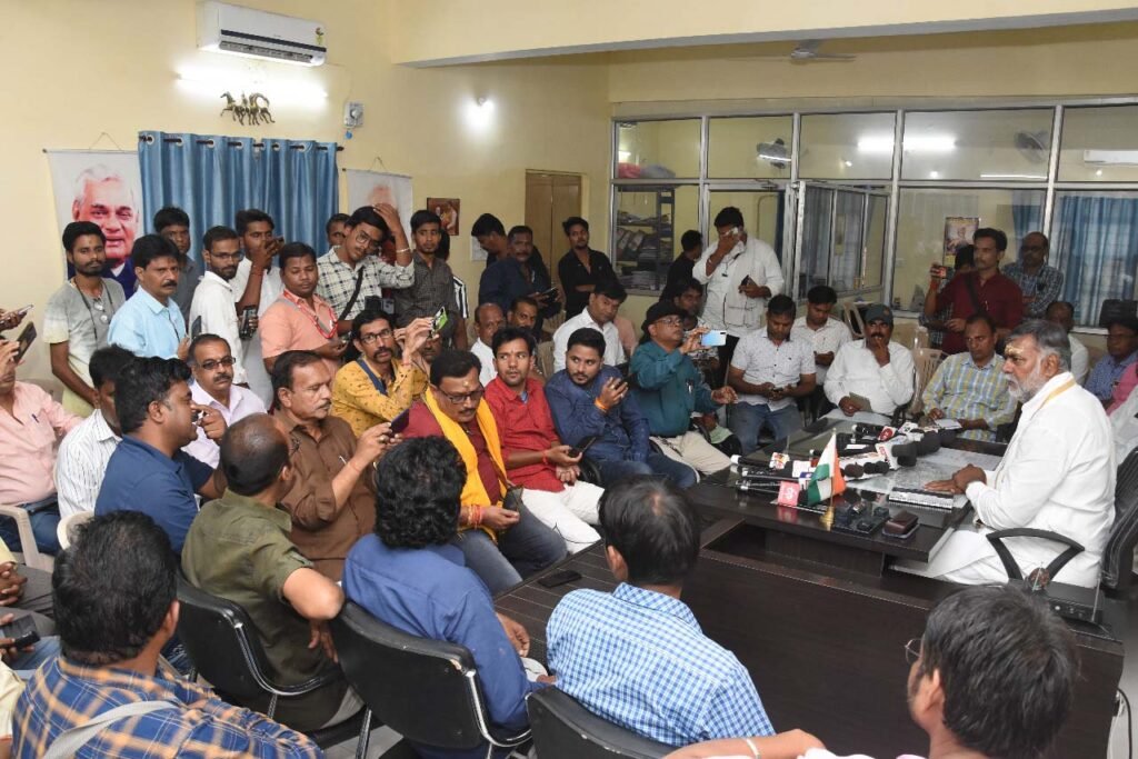केन्द्रीय राज्यमंत्री पटेल ने मीडियाजनों से चर्चा करते हुये दी जानकारी।लौह पुरूष सरदार वल्लभभाई पटेल कीअष्ट धातु प्रतिमा का अनावरण 31 को