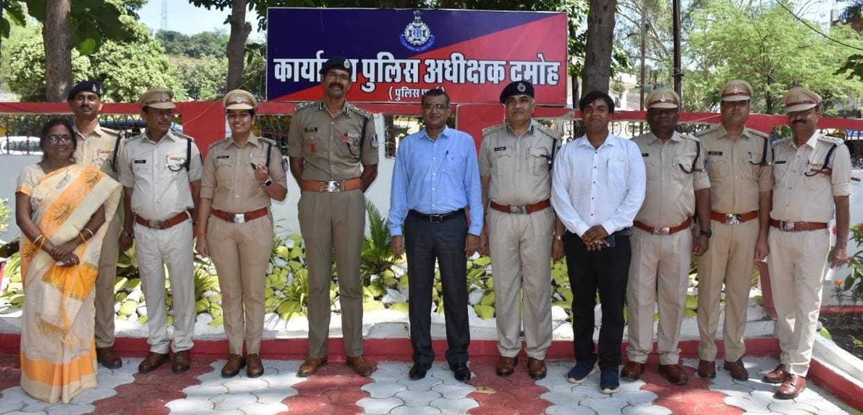आज पुलिस अधीक्षक कार्यालय दमोह परिसर में वने पार्क का शुभारंभ करने पहुचे पुलिस महानिरीक्षक सागर ने रिविन काटकर जव पार्क का शुभारंभ किया उसके वाद पार्क के विकास में भूमिका निभाने वाले और पुलिस विभाग की खवरे पल पल देने वाले वरिष्ठ अधिमान्य पत्रकार विनय असाटी का स्वागत सम्मान किया गया। पुलिस डिपार्टमेंट में भीतर तक अपनी पकड़ रखने वाले वरिष्ठ पत्रकार विनय असाटी जिन्हें हम बिना तमगे के पुलिस मैन भी कह सकते हैं पुलिस में इनकी इतनी गहरी पैठ है कि सातों ब्लॉक के थाना प्रभारियों और सिपाहियों के नाम और बैच नंबर सहित इन्हें कंठस्थ याद हैं यही वजह है कि वह पुलिस के खास प्रोग्रामों में ही देखे जाते हैं।