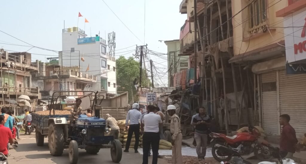 दमोह यातायात व्यवस्था को सुचारू रूप से चलाने के लिए यूं तो ट्राफिक व्यवस्था दमोह की वैसे ही बदहाल है ऊपर से दबंग लोग सड़कों पर अनलीगल कंट्रक्शन कर प्रशासन को मुंह चिढ़ाते देखे जा सकते हैं तो वहीं आज ताजा मामला असाटी वार्ड नंबर 1 के सामने एक दबंग का मकान बन रहा है जो प्रशासन को ठेंगा बताता नजर आ रहा है दीपावली का त्यौहार और रविवार होने के कारण बाजार में काफी भीड़ देखी जा रही है इसी के चलते व्यापारियों की आपत्ति पर पुलिस कंट्रोल रूम को फोन लगाया गया कि बीच सड़क पर गिट्टी सीमेंट रेता डालकर मकान की स्लिप डाली जा रही है