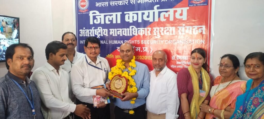 – दमोह जिला खाद्य अधिकारी राकेश अहिरवार जी का आज अंतर्राष्ट्रीय मानव अधिकार सुरक्षा संगठन दमोह जिला की इकाई ने सम्मान किया l राकेश अहिरवार जी का अच्छा कार्य निरंतर जारी है जिससे कि उपभोक्ताओं को खाद्य सामग्री शुद्ध मिल सके इसलिए वह निरंतर कई वर्षों से प्रयासरत हैं, एवं,तीज त्योहारों पर भी वह मावा मिठाइयां दूध घी इत्यादि की जांच करते हुए नजर आते हैं, इनकी कड़ी मेहनत और लगन को देखते हुए अंतरराष्ट्रीय मानव अधिकार सुरक्षा संगठन के जिला अध्यक्ष डॉ हरीश रजक के साथ संगठन के सभी सदस्य एवं पदाधिकारियों द्वारा सम्मान हेतु कार्यक्रम अंबेडकर भवन के बाजू में जिला कार्यालय में रखा गया, जिला खाद्य अधिकारी राकेश जी ने कहा कि मानव अधिकार सुरक्षा संगठन के द्वारा।