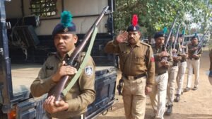 आरक्षक को सलामी देकर पुष्प चक्र अर्पित कर दी अंतिम विदाई