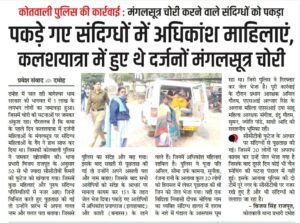 कलश यात्रा में मंगलसूत्र व चेन चोरी करने वाले 20 संदिग्ध अपराधी से पुलिस को कुछ हासिल नहीं हुआ। तो वही एक संदिग्ध से 1 लाख 80 हजार रूपए मात्र की बरामदगी।