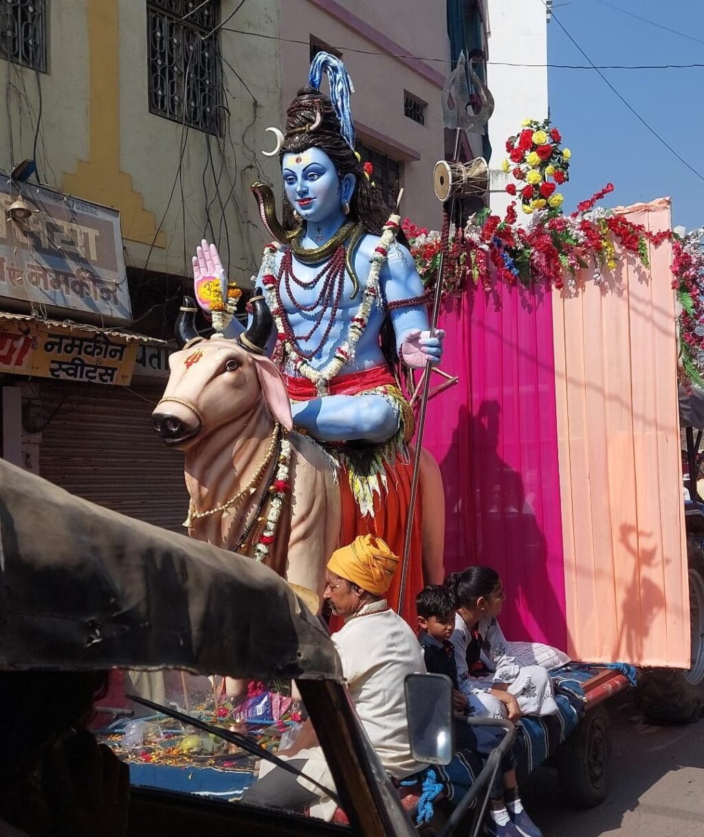 धूमधाम से मनाया जा रहा है आज महाशिवरात्रि का पावन पर्व संपूर्ण देश के सभी शिवालयों में आज भगवान भोलेनाथ की बारात निकल रही है तो लोग शिवालय पहुंचकर भगवान भोलेनाथ का आशीर्वाद ले रहे हैं दमोह के तीर्थ क्षेत्र बांदकपुर में रात्रि 2:00 बजे से ही भक्तों की लंबी लंबी कतार देखी गई तो वही आज दमोह जिले में भी भगवान भोलेनाथ की बारात लेकर शिव भक्त जागेश्वरनाथ बांदकपुर पहुंच रहे हैं जिसमें प्रमुख रुप से पुराना थाना जगदीश व्यायाम शाला के युवा मंडल द्वारा शिव की प्रतिमा लेकर निकले भोले के सभी भक्त डीजे बाजे की धुन पर नाचते गाते हुए पैदल ही दमोह से