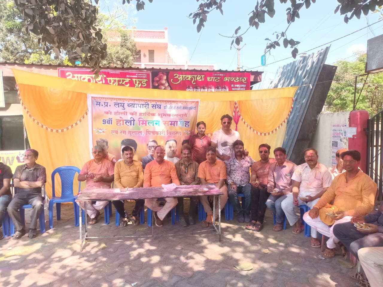 कार्यक्रम में भाग लिया और कार्यक्रम मैं बच्चों को रंग गुलाल पिचकारी मार्क्स जैसे अनेक उपहार देकर उन्हें पुरस्कृत किया होली के पावन पर्व पर बच्चों को रंग गुलाल पिचकारी मिलने से बच्चों के चेहरे खिल उठे। मध्य प्रदेश लघु व्यापारी संघ के प्रदेश अध्यक्ष तनुज पाराशर ने बताया कि यह होली मिलन कार्यक्रम हमारे संगठन द्वारा हर साल किया जाता है जिसमें जरूरतमंद बच्चों को होली के उपहार देकर उन्हें त्योहारों से जोड़ने का काम किया जाता है आज की पीढ़ी जो सनातन संस्कृति के त्योहारों को भूलती जा रही है और मोबाइल में लगी रहती है बच्चों को होली के त्यौहार से जोड़ने के उद्देश्य ही आज बच्चों को रंग गुलाल पिचकारी मार्क्स जैसे सामान दिए गए ताकि वह बच्चे अपने त्योहारों से जुड़े और खुलकर होली खेले। इस अवसर पर