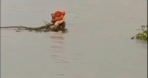 बजरंगबली जी की मूर्ति को नदी का तेज बहाव भी हिला नहीं पाया. ग्रामीणो ने जानकारी देते हुए बताया कि लगातार हो रही बारिश के चलते गुरैया नदी का जलस्तर बढ़ता गया और बाढ़ जैसे हालात निर्मित हो गए.भारी बारिश के चलते गुरैया नदी के पानी ने रोनी गांव को अपनी चपेट में लिया जिस कारण सारा गांव जलमग्न हो गया.इस बीच बाढ़ के कहर ने नदी के तट पर बने हनुमानजी महाराज के मंदिर को पूरी तरह से डुबो दिया