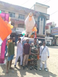 प्रमुख धर्मेंद्र चौबे भारतीय मजदूर संघ देवेंद्र चौबे मध्य प्रदेश लघु व्यापारी संघ के जिला अध्यक्ष पंकज सोनी कोषाध्यक्ष पप्पू पंडा उमेश महाराज शुभम उपाध्याय साजिद रिजवी देवेंद्र कोरी संतोष रजक राजू ठाकुर राघवेंद्र ठाकुर उमर खय्याम सहित लघु व्यापारी संघ के सभी पदाधिकारी की मौजूदगी में विशाल तिरंगा यात्रा का आयोजन हुआ।