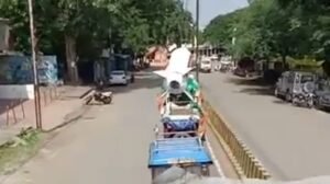 झांकी आकर्षण का केंद्र रही तिरंगा यात्रा के आगे छोटा हाथी पर चंद्रयान 3 की झांकी को जनता के बीच प्रदर्शित किया गया जिससे लोगों को देश की उपलब्धि के बारे में पता चल सके chandrayaan-3 की झांकी देख कर सभी ने तारीफ की