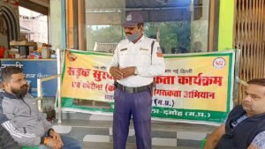 मध्य प्रदेश के दमोह जिले में ट्रैफिक पुलिस द्वारा नुक्कड़ सभा द्वारा जनता को कोरोना काल के दौर में सुरक्षित...